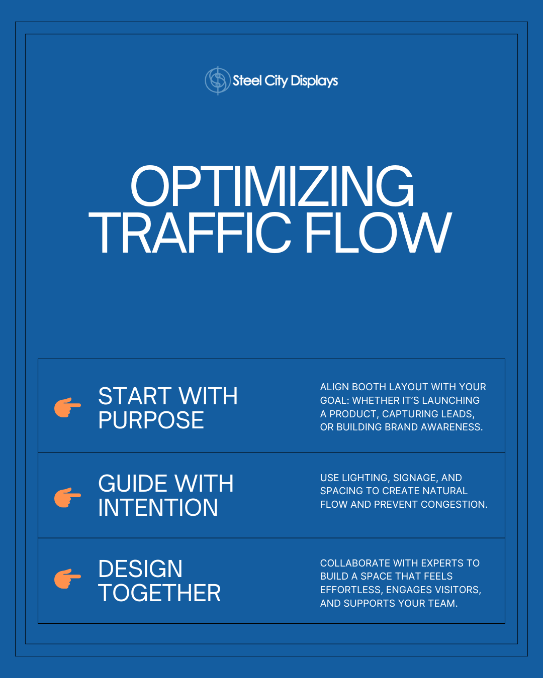 In the high-stakes world of trade shows, first impressions matter, but fluid movement through your booth can make or break the attendee experience. At Steel City Displays, we believe powerful design is more than eye-catching; it’s intentional. It invites, guides, and connects. That’s why optimizing traffic flow is a cornerstone of every custom exhibit we build.